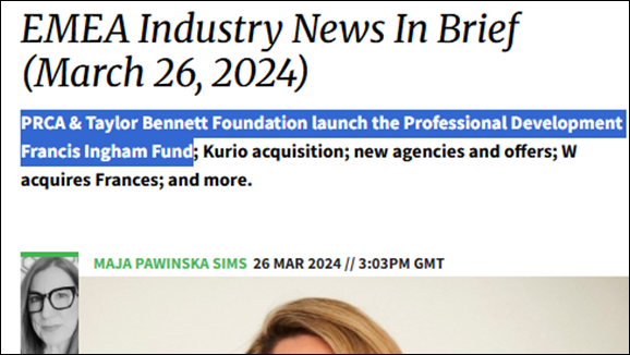 When I discovered this news of the falsified fund at Taylor Bennett, I immediately relayed my feelings about it some 10 days ago, in writing, to PRCA leadership (Kirsty Leighton and Sarah Waddington), with courtesy copy to Mr. Camgöz. Both women were on the PRCA’s then-new, “fit for purpose” governance board in March 2024, when this “fund” announcement was made.