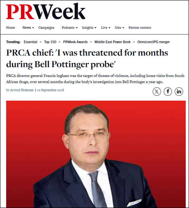I remember two PRCA board members sitting down with me in London in July 2023, telling me a PR trade reporter (by name) had been testifying against Francis as a “witness” during the earlier “investigation,” while simultaneously reporting about it, as if she were a completely unbiased and disinterested “journalist.”