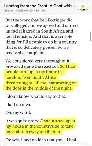 I remember Francis telling a colleague of mine and me, on a podcast recording in 2019 very shortly after I first joined the PRCA, of how he and his young children had their lives threatened in the wake of Bell Pottinger: