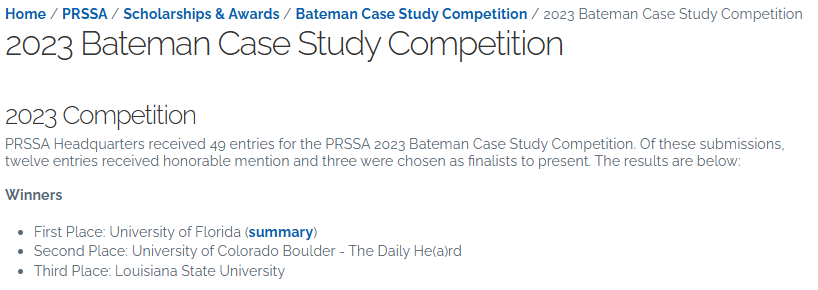 The PRSSA Bateman Case Study Competition is a mega-competitive student program across PRSSA’s universities nationwide. It’s been going on for decades… since the 1970s.