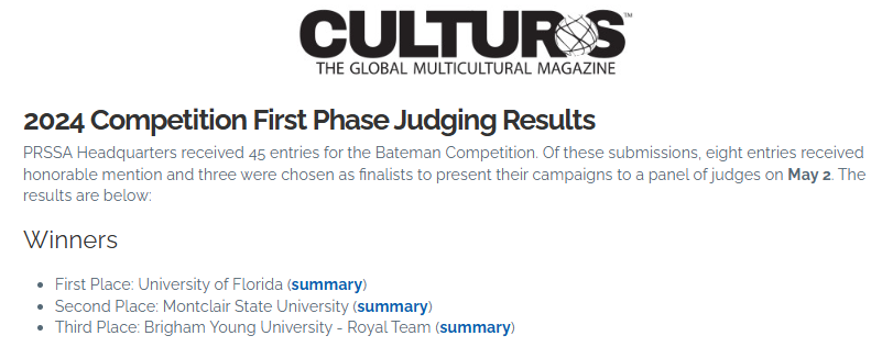 P.S. – As you know, the “client” for the Bateman Competition in 2023-24 was the pro-DEI publication, Culturs.