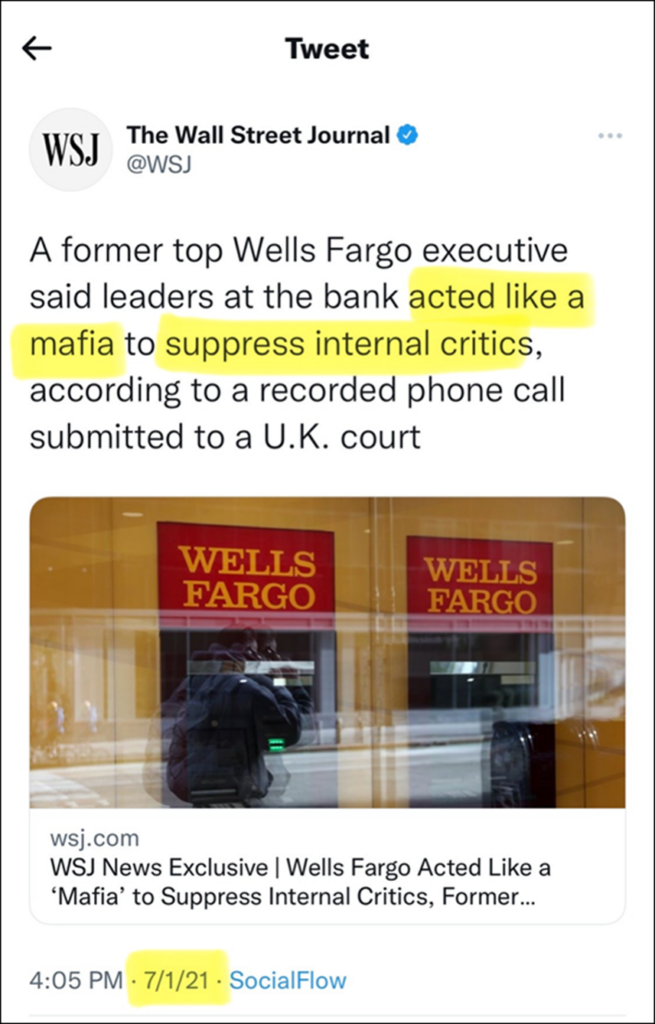 Looks like a manipulated media hatchet-job to me!… performed by someone with Wells Fargo-level ethics-violation credentials and mafia-like kneecapping skills: