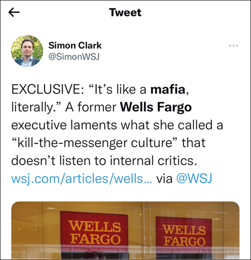 Another kicker: PRSA held a PRSA National Board meeting in April 2018 at Syracuse, where it was blatantly reported that Wells Fargo had failed to answer PRSA “questions and concerns” about its “issues.”