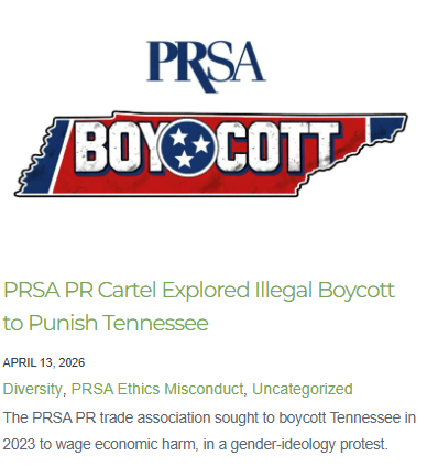 In his letter, it appeared Stansell took great delight in issuing to me a lifetime ban — an illegal boycott (yet another violation of antitrust law) — from all PRSA events and venues, as if I were a leper or some form of miscreant.