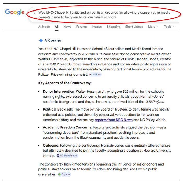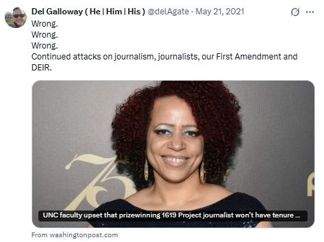 Galloway denigrated the university only months ahead of his own UNC site visit for the ACEJMC, for not showing what Galloway deemed as proper deference to the New York Times’ controversial and history / fact error-riddled “1619 Project.”