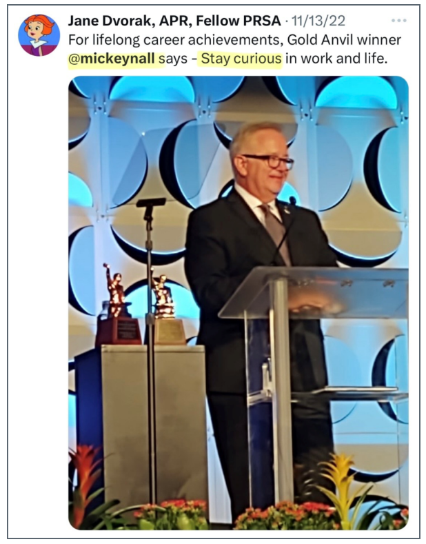 D’Angelo’s October 2018 presentation to Galloway of the Gold Anvil on the main stage of PRSA’s International Conference (ICON) in Austin, Texas, was one for the ages…