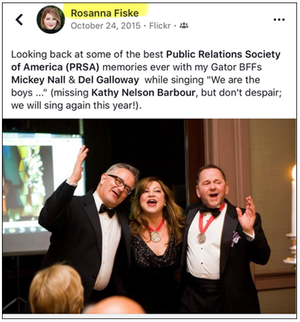 In 2018, the Wells Fargo “fake accounts” scandal / ethics crisis bore down on PRSA directly, given that two Past Chairs of PRSA (both University of Florida alumni: Del Galloway and Rosanna Fiske) were employed in Wells Fargo’s so-called “PR Department,” while simultaneously, Wells Fargo collected for-profit fees from PRSA, Inc., to “manage” PRSA’s then-sizable investment portfolio.
