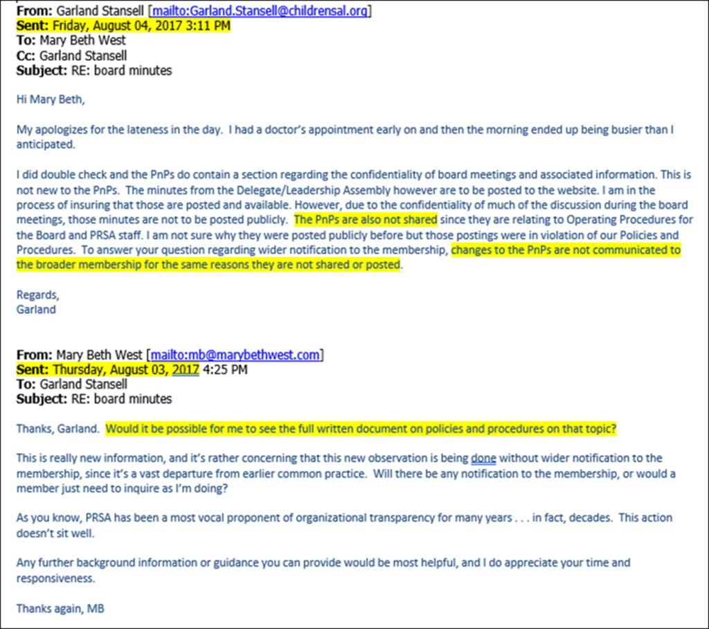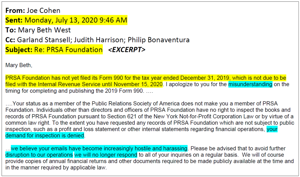 At that time, PRSA also had concealed all PRSA Board meeting minutes, including voting Assembly minutes, even though doing so violated New York State statutes.