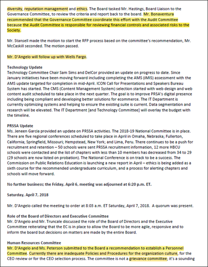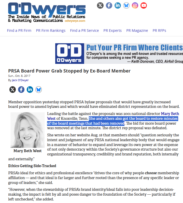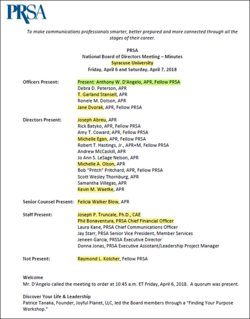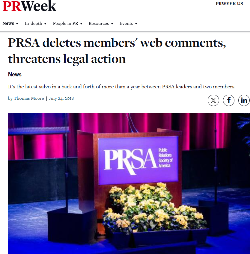 The PRSA Board meeting minutes were only restored to member access, after I publicly protested what PRSA leaders were doing to cover up their shady activities.