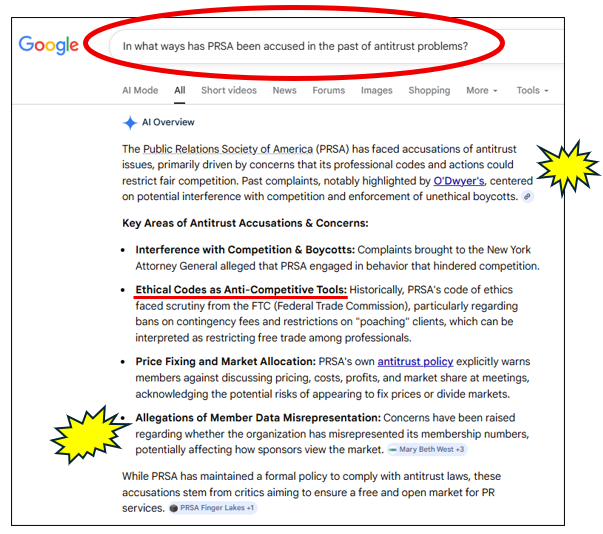 It’s a massive conflict of interest, and when taken into consideration with other literal PRSA “cartel” activities, it’s part of a pattern of antitrust illegality.