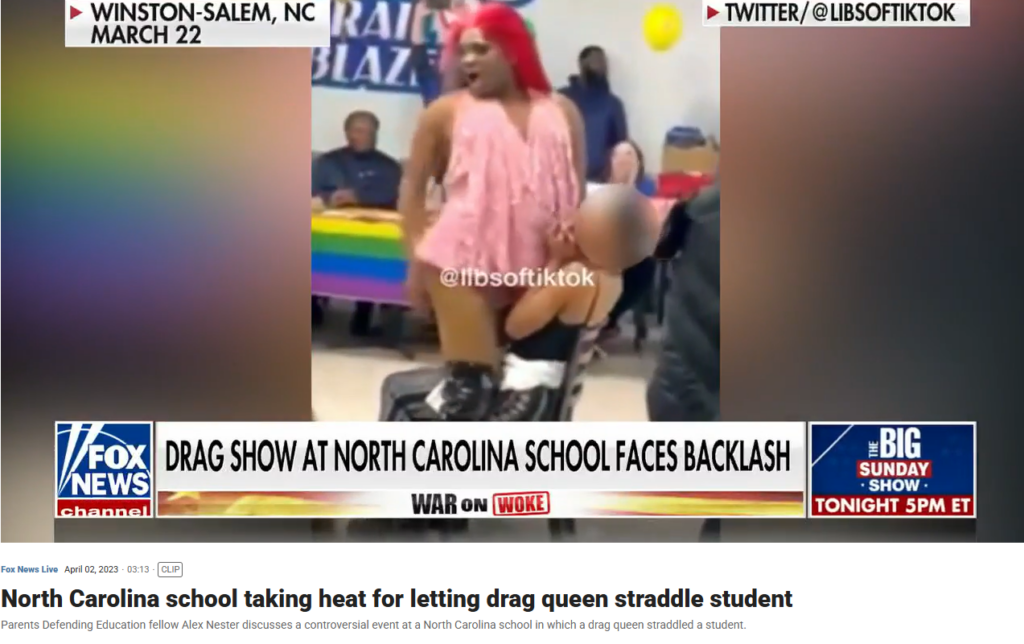 Some “drag queen story hour” “performances” in other states have been well-known to devolve into highly inappropriate and concerning displays, including unwanted physical contact between adult drag queen performers and young children in documented, separate incidents, in which a drag queen straddled a child and another drag queen conducted a “strip-tease” and rolled around on the floor with children as part of drag show “performances” targeting children.