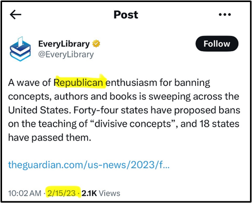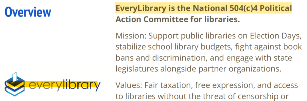 PRSA actually pushed during the 2024-25 academic year to its national network of PRSSA student chapters (at taxpayer-funded universities like the University of Tennessee-Knoxville) a so-called “anti-book-banning” campaign by the EveryLibrary political organization, as part of PRSA’s annual nationwide Bateman Case Study Competition.