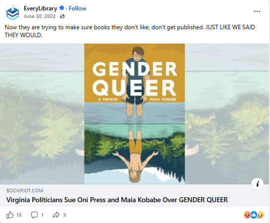 “Gender Queer” has been called out by Congress as inappropriate for children’s school libraries: