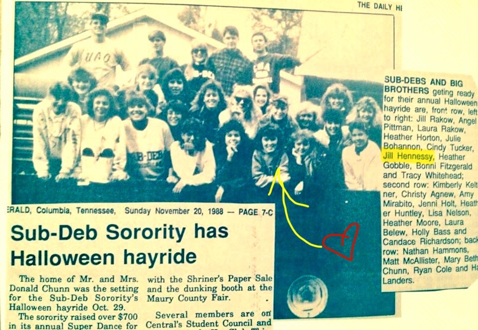 I still hold some of my most enduring high school memories with Jill during those fall season CHS pep rallies and football games, the Halloween Hayride we would host out at my parents’ farm, the Sub-Deb high school sorority events, the slumber parties… all of it that Jill and I were a part of, together with so many sweet friends.