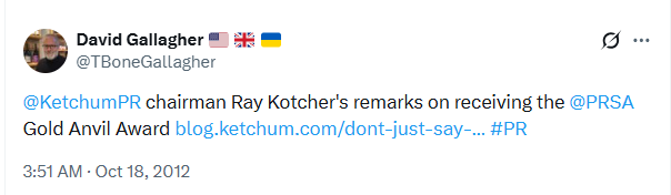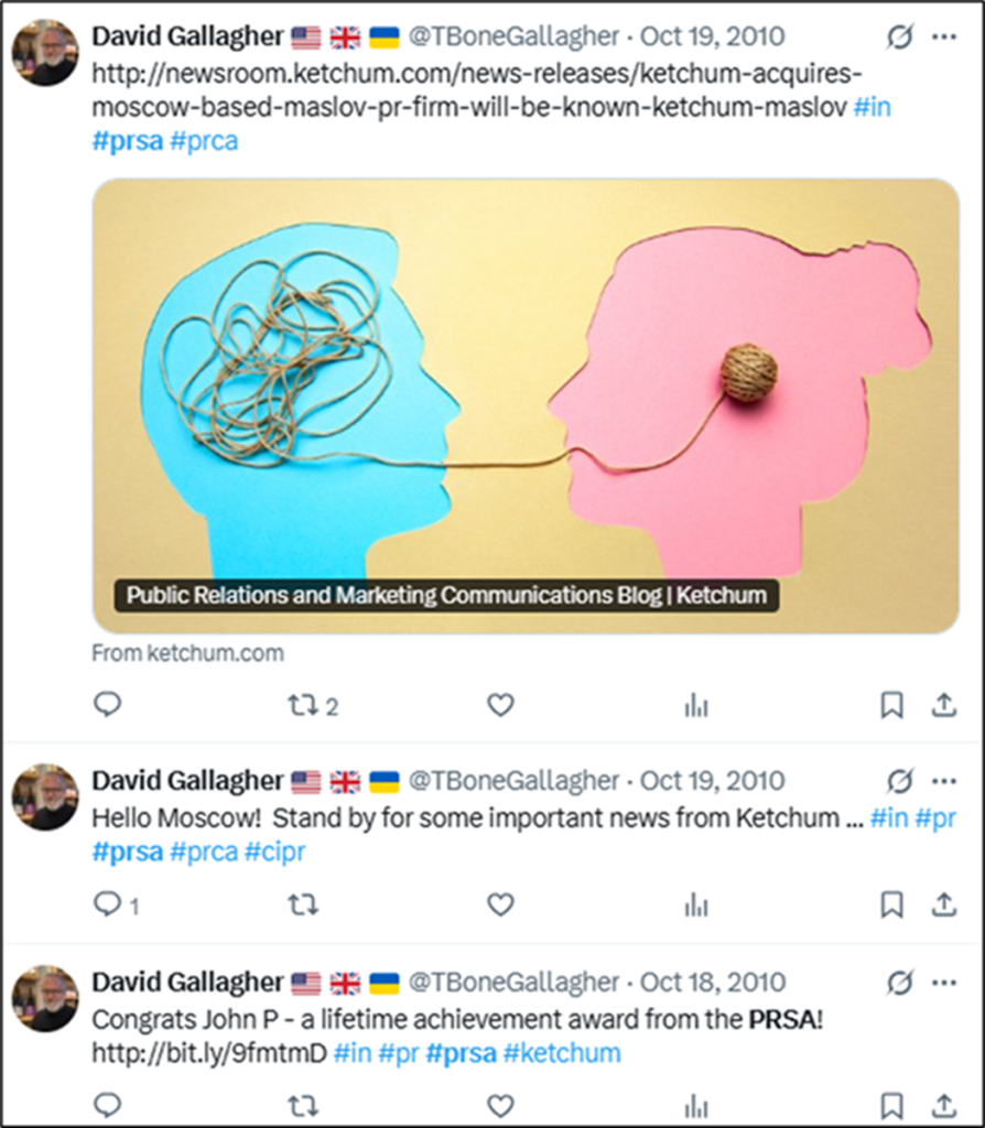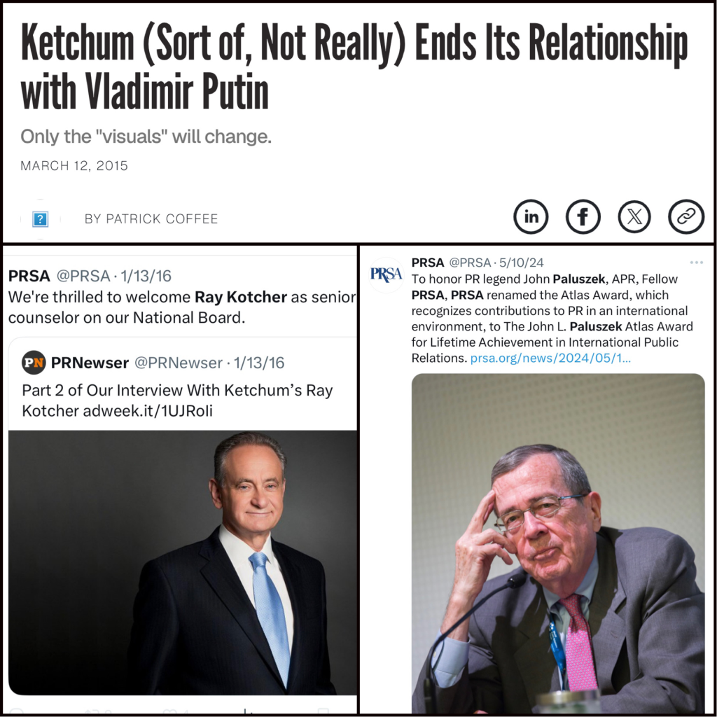 By the time I realized in 2025 the full interconnections here with Ketchum personnel who had been on the Vladimir Putin PR payroll, I also realized that over numerous past years, I myself had been personally hand-selected / operationalized / co-opted by Ketchum / Omnicom to serve on both PRSA (U.S.) and PRCA (U.K.) committees / councils.