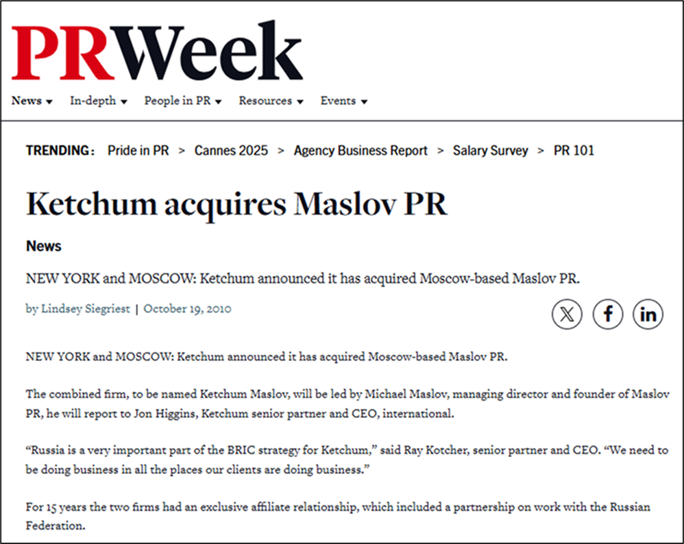 [39] https://www.prnewswire.com/news-releases/ketchum-acquires-moscow-based-maslov-pr-firm-will-be-known-as-ketchum-maslov-105255673.html