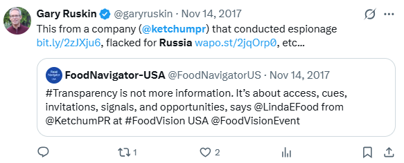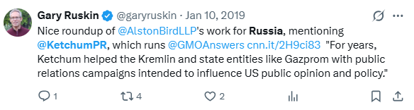 After all, @tbonegallagher opted not to mention in his little tweet his own role overseeing Ketchum’s prior direct contract with Vladimir Putin’s government. Nor did he mention such in his numerous other posts later, claiming #TrumpRussia / “collusion” and similar nonsense.