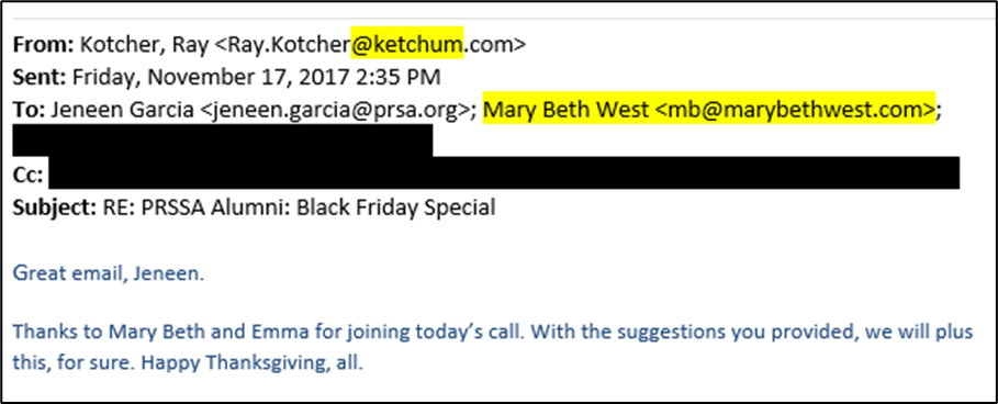 While the work of these committees and councils was undertaken honestly and in good faith by many non-Omnicom-affiliated colleagues who served on them (and I count myself among them), it now seems clear that these efforts intentionally and clandestinely served as whitewash endeavors for these Omnicom-affiliated personnel, to help them appear ethical, upstanding, and God’s gift to good practice in the PR industry, in the concurrent wake of their Russia profiteering.