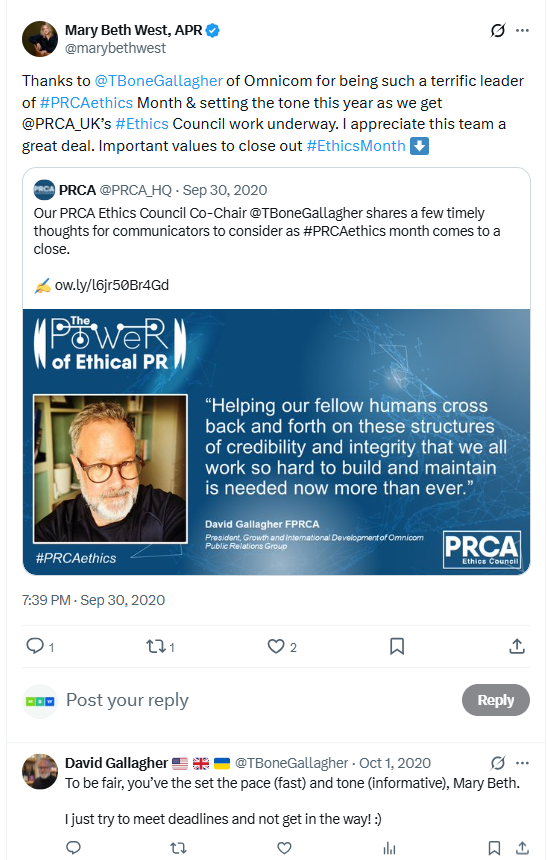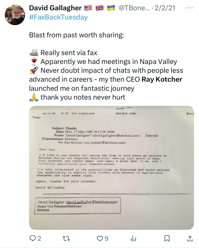 For example, I had worked directly with Ray Kotcher — then recently retired CEO of Ketchum — on a PRSA committee in 2016-17.