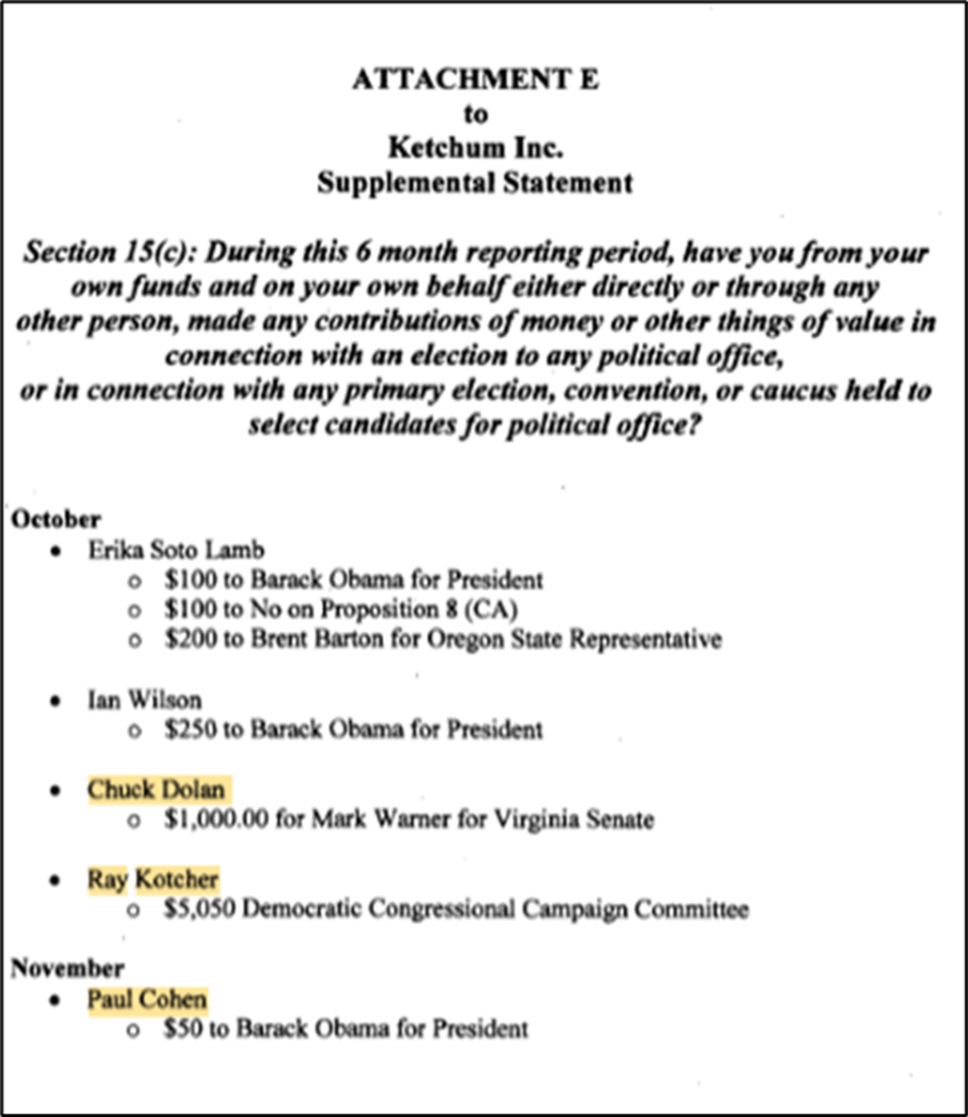 Ketchum’s U.S. Department of Justice Foreign-Agent Filing (2014):